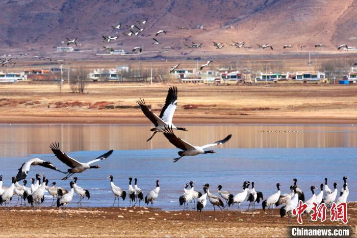 r黑颈鹤是中国国家一级保护动物,是唯一生活、繁殖在高原的鹤类,被藏族民众誉为“神鸟”。拉萨市林周县、墨竹工卡县等拉萨河流域是黑颈鹤的主要越冬地之一。近年来,西藏自治区多措并举实施生态建设工程,黑颈鹤数量逐年递增,目前西藏黑颈鹤数量超过万只。(完)